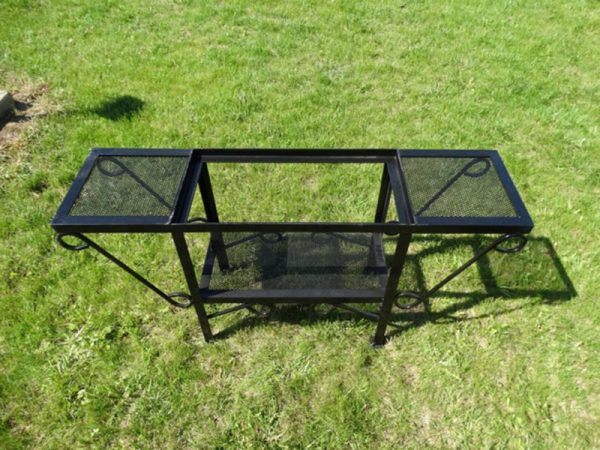 Мангал с крышей. Красивый и очень удобный мангал. Предусмотрено два стола для тарелок и кастрюль. Снизу есть удобная дровница.