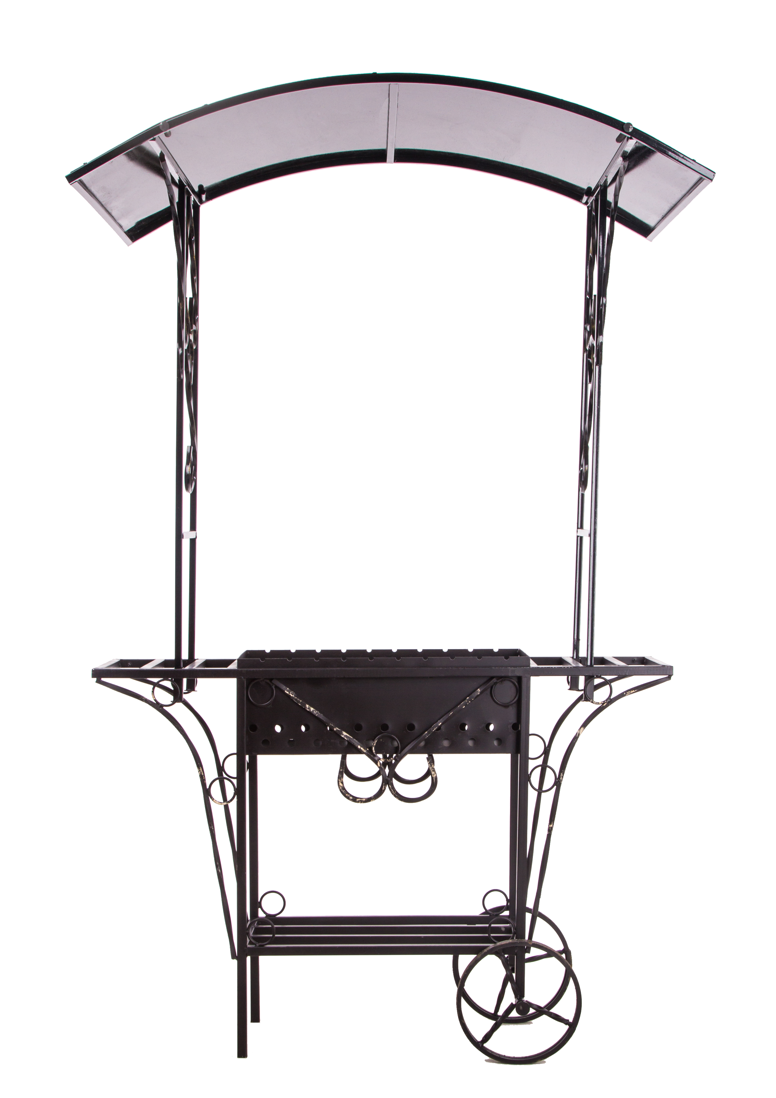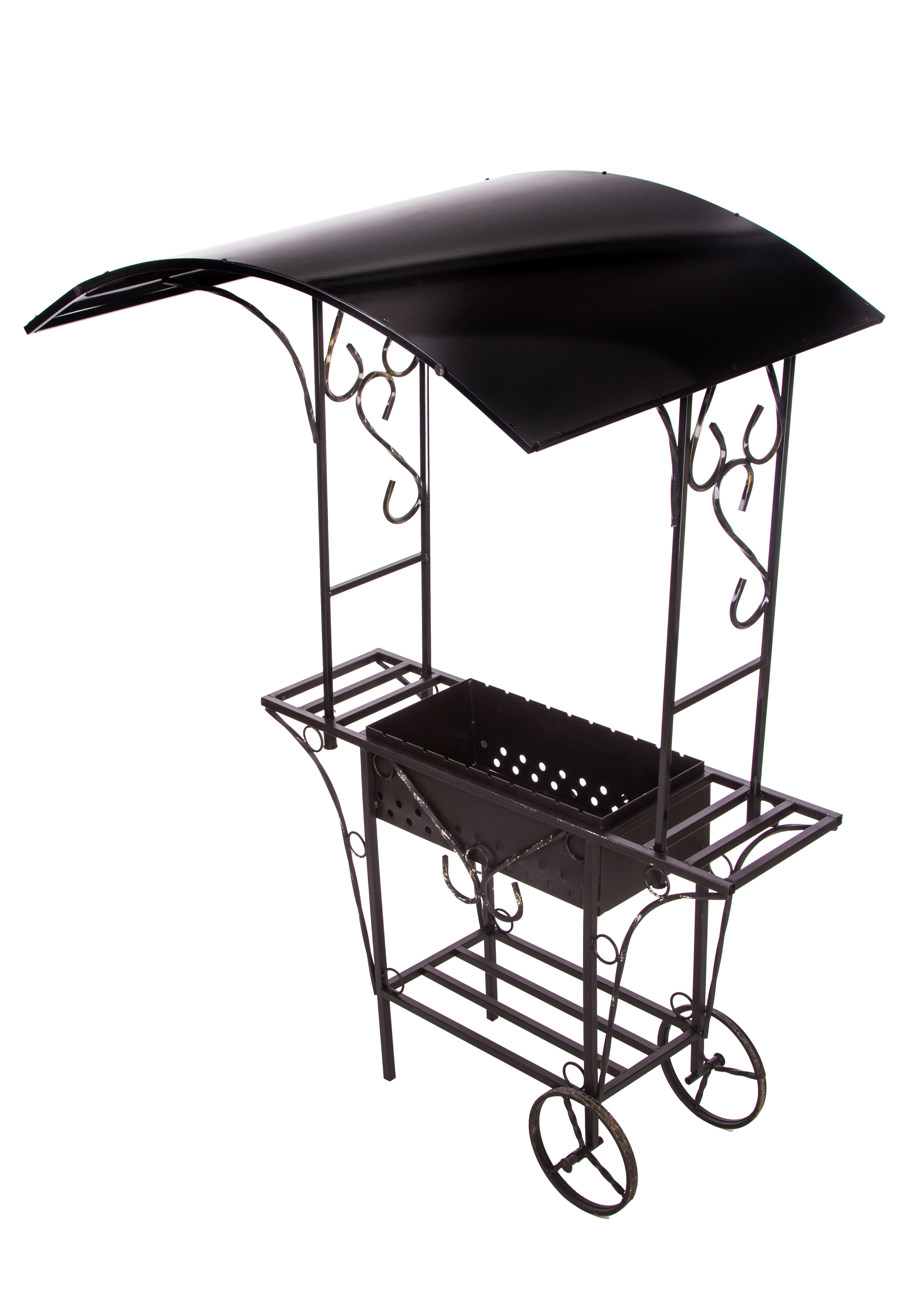 Мангал с крышей. Красивый и очень удобный мангал. Предусмотрено два стола для тарелок и кастрюль. Снизу есть удобная дровница.