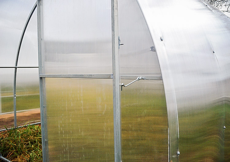 Теплица комплектуется качественным и долговечным сотовым поликарбонатом. Полная совместимость с системами капельного полива и автопроветривания.