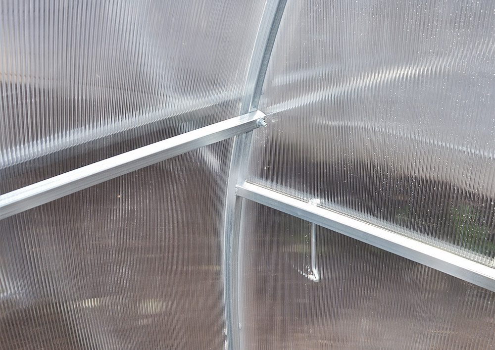 Цинковое покрытие прекрасно защищает каркас теплицы от коррозии. Стальная труба оцинкована полностью с наружной и с внутренней стороны. Теплица Агросфера-Плюс будет верно служить Вам долгие годы, не требуя дополнительной антикоррозийной обработки.