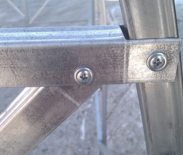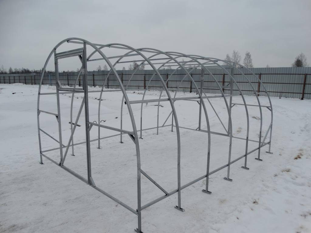 Для облегчения сборки теплицы торцы, двери, форточки изготавливаются и поставляются цельными. Для обеспечения жесткости всего каркаса промежуточные арки теплицы производятся и поставляются цельногнутыми. Продольные стрингера производятся и поставляются в двух позициях: 2 метра и 2,08 метра соответственно. Для достижения прочности всего каркаса -предусмотрены поперечные усилители арок, из расчета по 1 штуке на каждой арке. Во избежания наклона торцов каркаса при ветровых нагрузках – предусмотрены поперечные раскосы, по 4 штуки на стороны каждого торца. Все необходимы элементы (саморезы, болты, гайки и т.п) поставляются в коробках. Для крепления сотового поликарбоната к каркасу теплиц предусмотрены стальные оцинкованные стяжные ленты со стяжным болтом, из расчета по одной ленте на каждую дугу.
